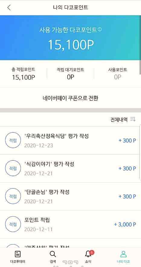 다이닝 코드를 시작한 지 2달이 안되었는데 벌써 15,100을 모았습니다.