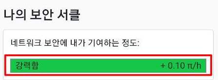 이렇게 방패 인원을 모두 채우면 시간당 0.1파이를 추가로 채굴할 수 있습니다.