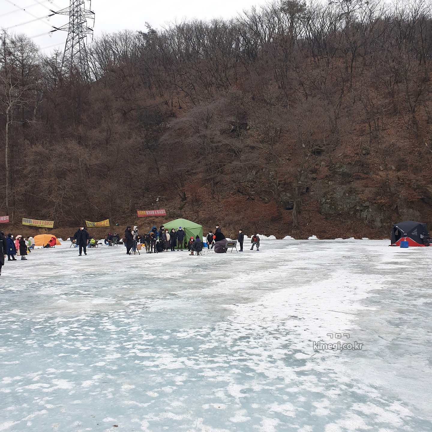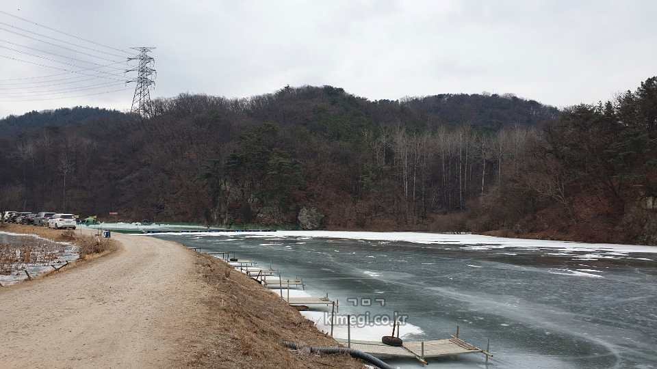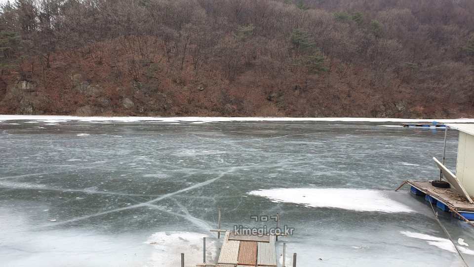 날씨가 추워서 저수지 전체가 꽁꽁 얼어 있었습니다.