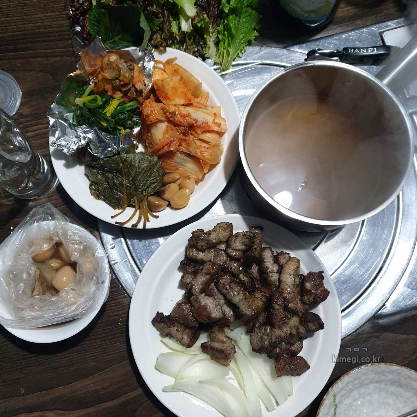 엄마가 싸준 반찬과 함께 바비큐를 먹었습니다.