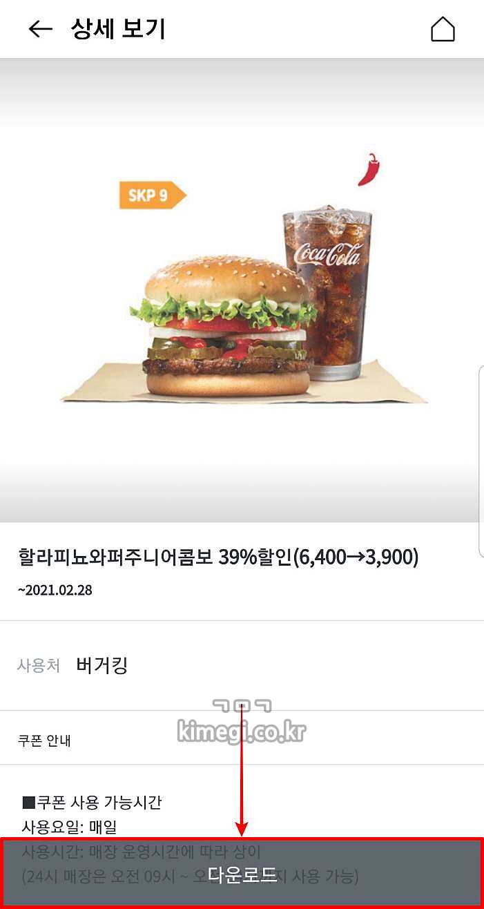 버거킹을 검색하셔서 들어가면 아래화 같이 할인된 쿠폰이 나옵니다.