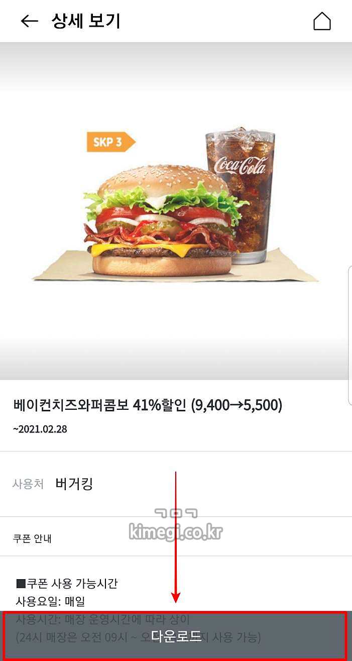 버거킹 쿠폰 다운로드하기