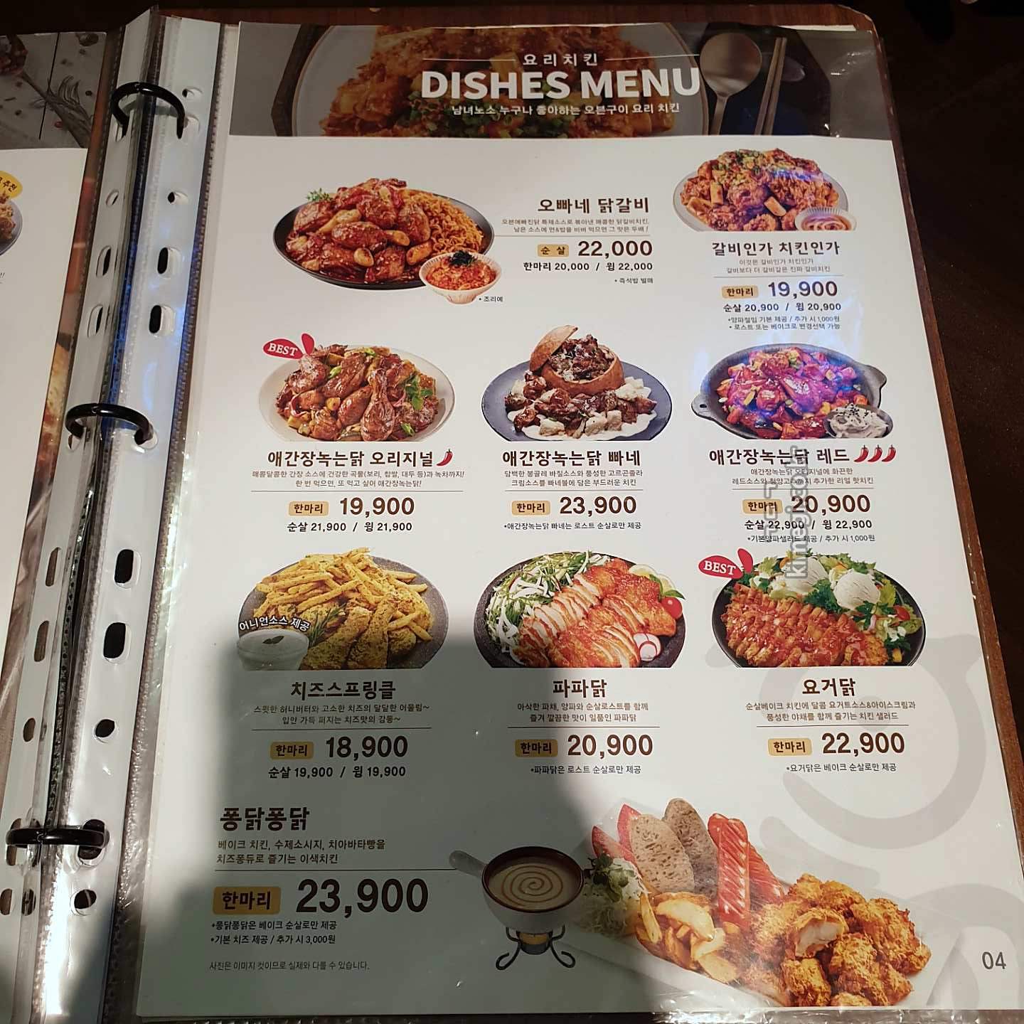왕십리역 오븐에 빠진 닭 메뉴판입니다.