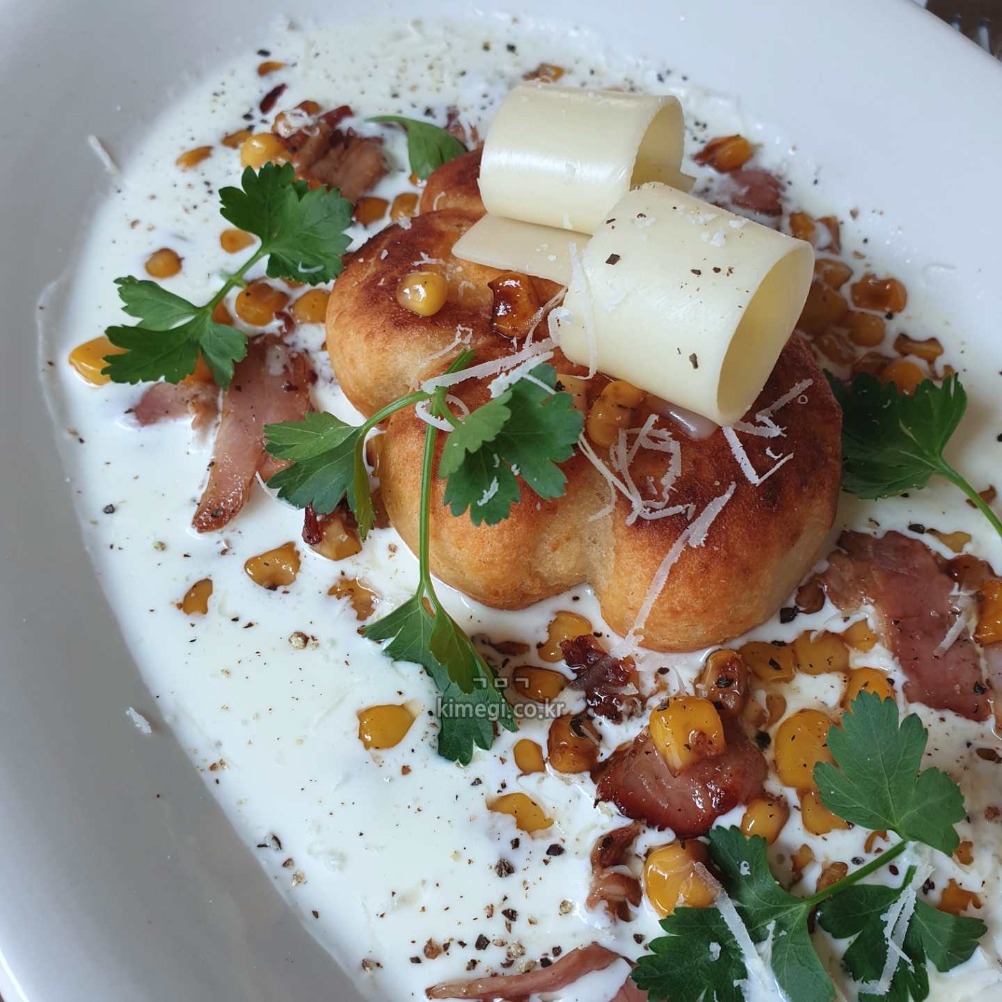 베이컨과, 옥수수가 들어간 크림 뇨끼입니다.