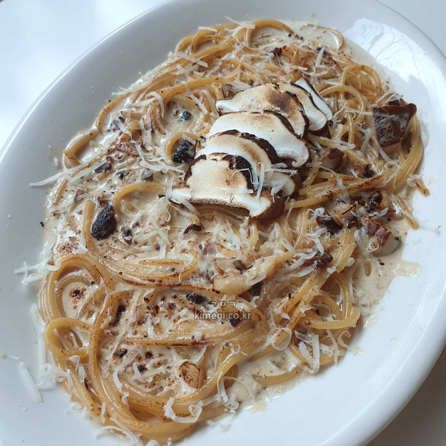 버섯의 진한 향이 나는 크림 파스타였습니다.