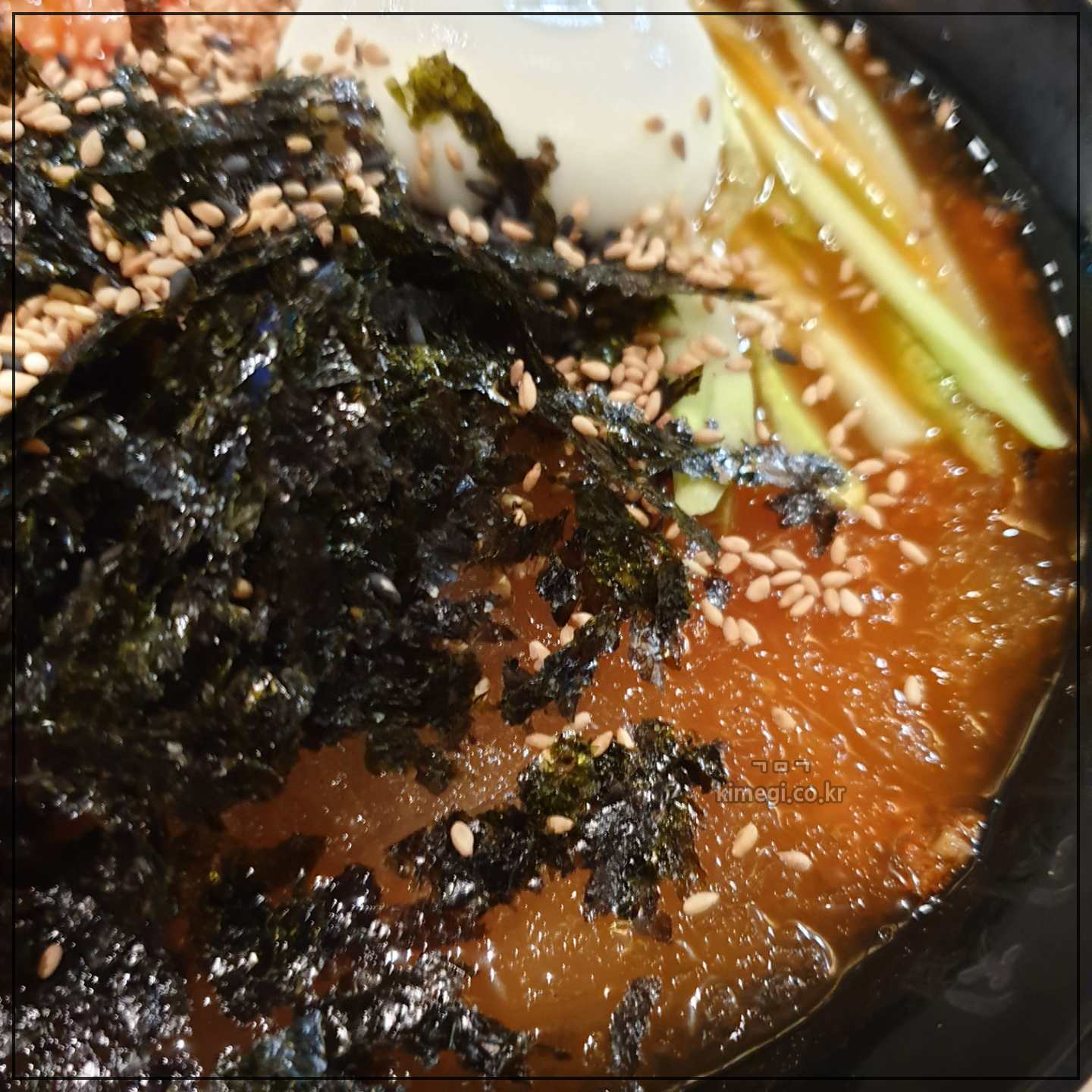 김치찌개, 냉면, 볶음밥 중에 고민하다가 김치말이 국수로 결정했어요.