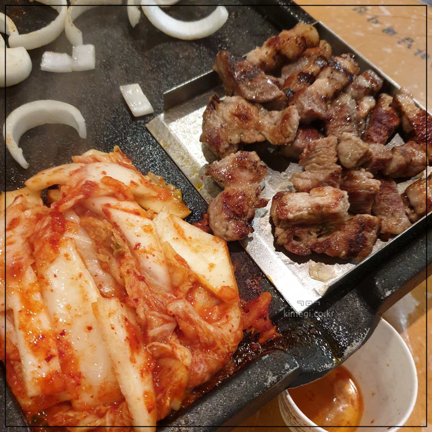 타이밍 맞춰서 김치와 양파도 올려줍니다.