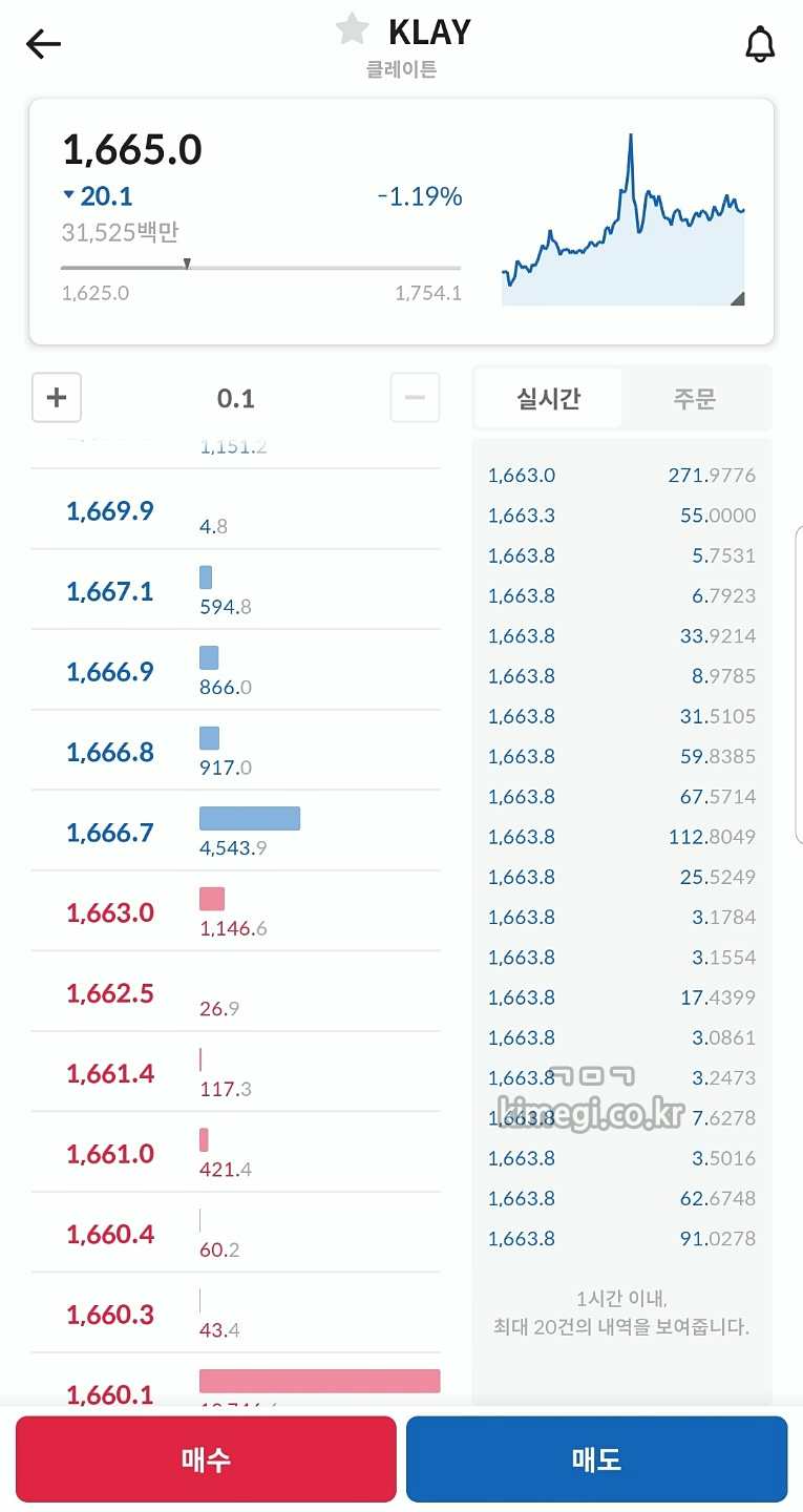 클레이튼(KLAY) 지금 시세가 1,665원이네요.