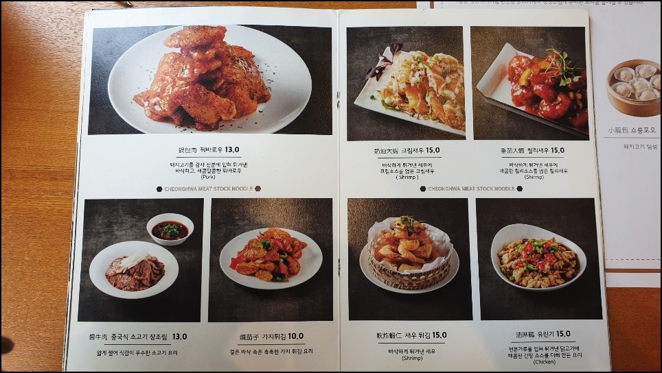 신촌 청화원의 자랑인 우육 도삭면과 소룡포오를 주문했어요.