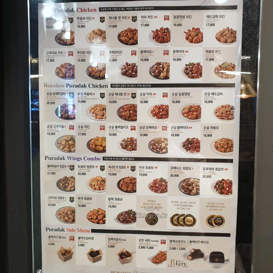신림역 푸라닭 메뉴판