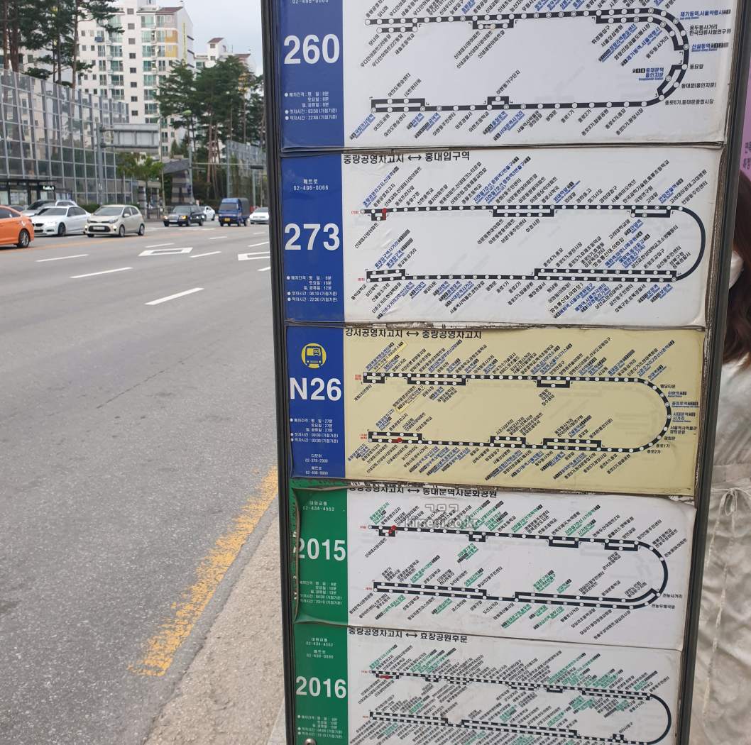 오피스텔에서 3분 거리에 정말 많은 버스 노선이 있어 원하는 전철로 갈아타기 쉬웠습니다. 물론 강남으로 바로 갈 수 있는 노선이 없는 것이 아쉬웠습니다. 7호선을 타기 위해 버스를 타고 면목역으로 가거나 6호선을 타고 태릉입구로 가서 강남으로 가야 하는 부분이 큰 단점입니다.