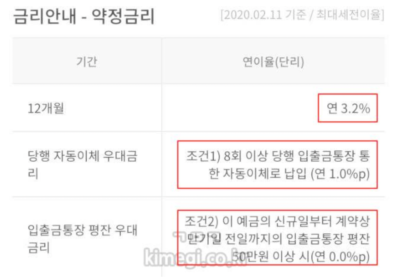 월 최대 30만 원 / 12개월 동안 가입 가능한 조건이 있지만 가입하지 않을 이유가 없습니다. 기본금리 3.2%에 우대금리 1%입니다. 물론 우대금리가 있지만 달성 조건이 정말 간단합니다. 8회 이상 당행 입출금통장으로 자동이체로 납입하면 됩니다. 월급날 30만 원만 월급통장에서 자동이체 설정해 놓으면 간단히 해결되는 우대금리 조건입니다.
