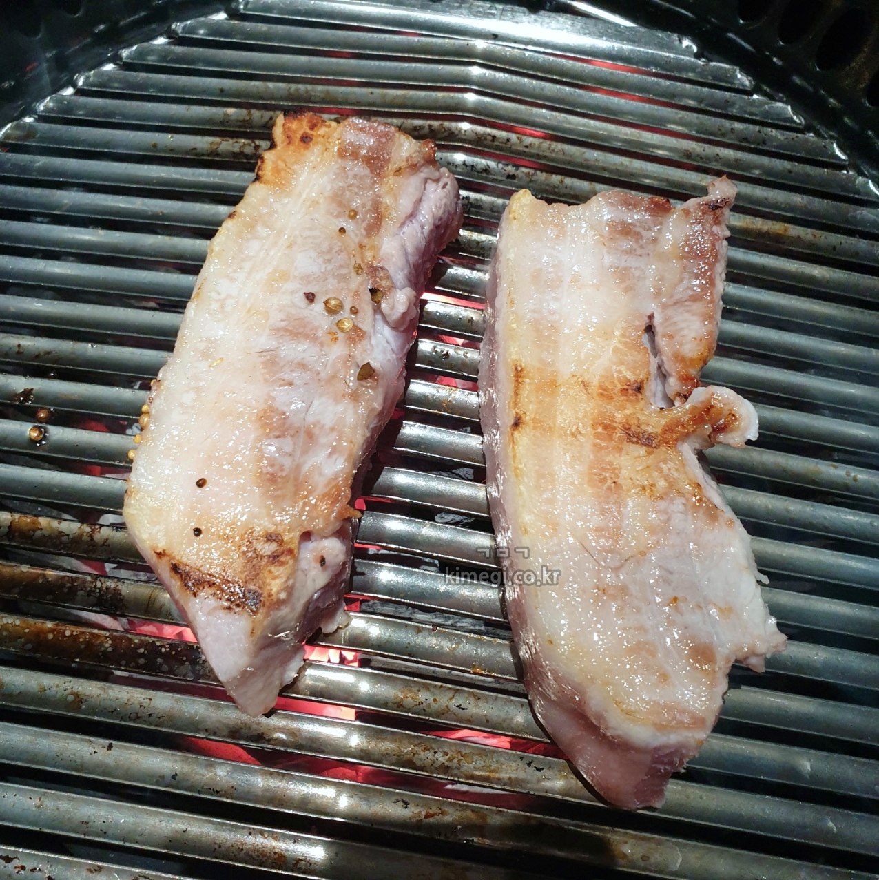 두께도 있고 뼈도 붙어 있지만 직원분이 구워주시니까 좋습니다. 두툼해서 굽는데 시간이 조금 걸렸어요.