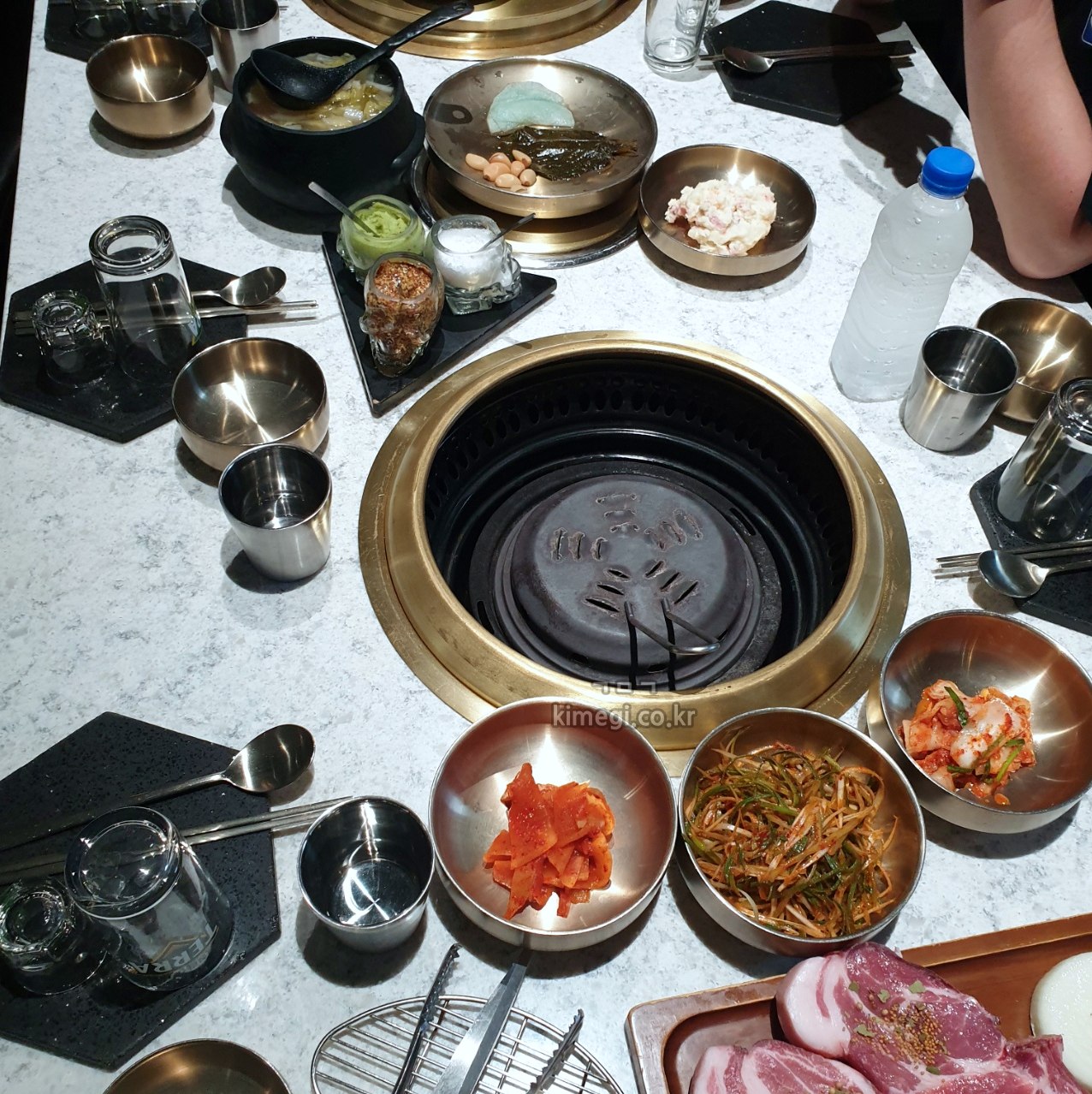 테이블이 커서 밑반찬이 푸짐한데도 비어 보이는 느낌입니다. 이래서 고깃집 테이블을 작게 만드나 봐요.