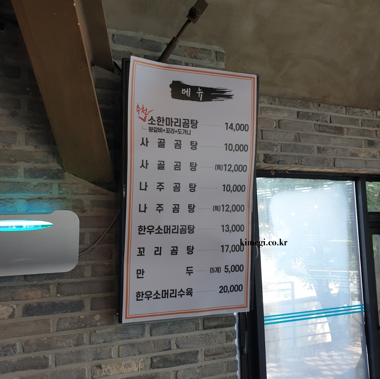 사골곰탕과 나주곰탕이 기본 곰탕 메뉴이고 소 한 마리 곰탕과 꼬리곰탕도 있었어요. 사이드로는 만두와 소머리수육도 있었어요. 저녁으로 고기를 많이 사놔서 사이드는 주문하지 않았어요.