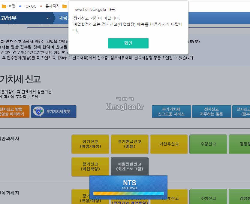 정기신고 기간이 아니면 아래와 같이 들어가지지 않기 때문에 기간을 악착같이 지키지 않아도 됩니다.