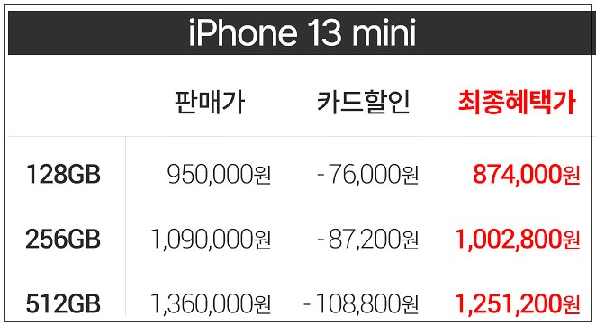 아이폰 13 사전예약 가격입니다. 용량별, 기종별 가격이니까 참고해서 사전예약 성공하시길 바래요. 사전예약도 조기마감 되면 결국 시중에 풀릴 때까지 기다려야 하니까 일단 예약하고 생각해 보는 것도 좋을 것 같아요.