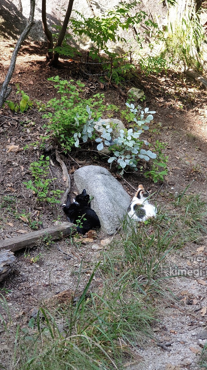 산에 고양이가 정말 많았습니다. 저흰 먹을 게 없어서 주지는 않았지만, 애초에 먹을게 없는 것을 아는지 다가오지도 않더라고요. 의자고 뭐고 없습니다. 넓은 바위만 나오면 누워서 쉬면서 내려왔어요. 하산할 때 항상 생각하는 것이 다시는 등산 가지 말아야지입니다. 그런데 1년마다 등산이 하고 싶어 지더라고요.