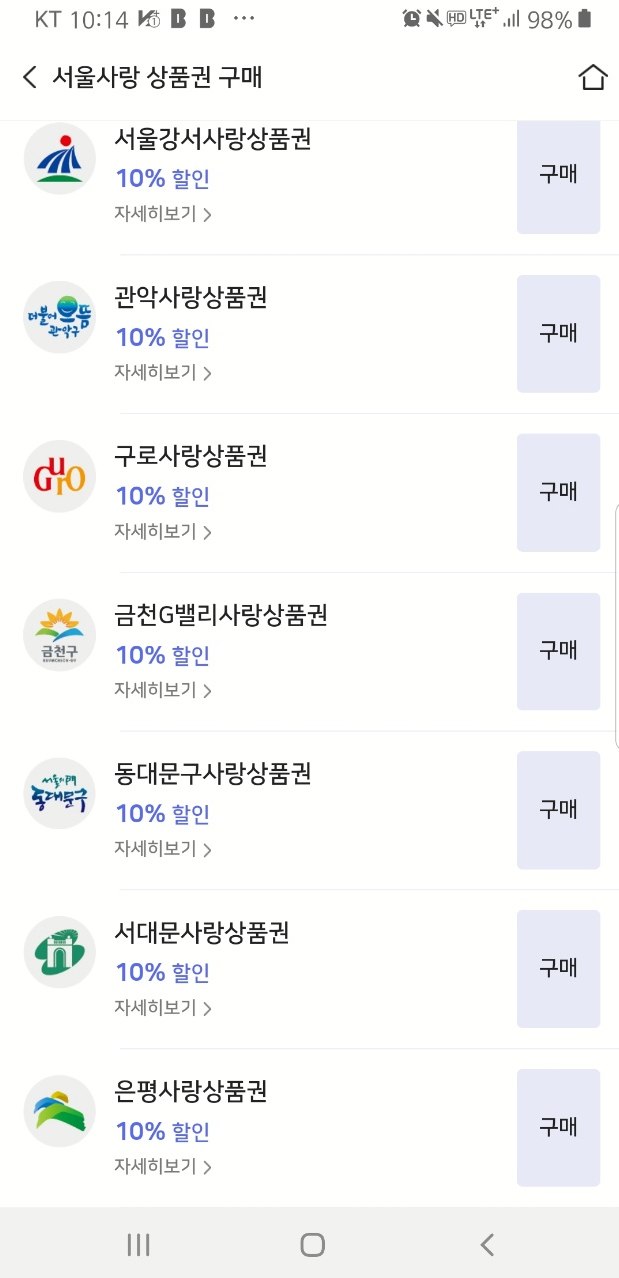 아직 노원, 도봉, 강북, 성북, 중랑, 광진, 성동, 용산, 종로, 중구의 서울사랑 상품권이 남아있습니다. 일정 맞추어서 들어가서 구매해 놓으면 5년 동안 사용할 수 있습니다. 내가 낸 세금으로 다른 사람들이 혜택을 보게 할 수 없습니다.