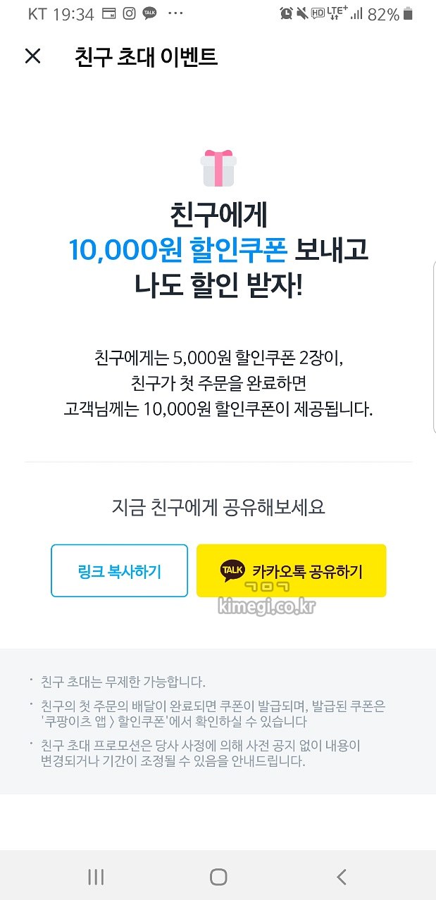 여기서 꿀팁이 있습니다!! 위의 링크로 추천을 하셔서 5천원 쿠폰 2장을 일단 받으세요. 그리고 같이 사는 인원을 본인의 아이디로 추천을 해서 서로 1만 원씩 추가로 받으면 총 3만 원의 할인 쿠폰을 받는 샘입니다. 회사에서 배달을 시키거나 집들이를 할 때 지인들에게 추천해서 쿠폰을 받으면 훨씬 이득입니다.