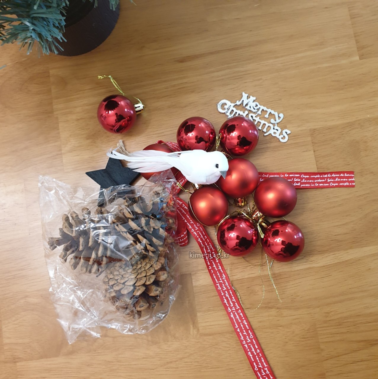 어렸을 때 집에 있는 큰 나무에 크리스마스 장식품으로 장식했던 기억이 나네요. 서울로 이사를 와서는 트리를 만들어본 기억이 없었는데 이번에 크리스마스트리로 분위기를 만들어보기로 했어요. 큰 나무가 있으면 장식만 구매해서 꾸몄을 텐데 따로 기르는 식물은 없어서 작은 크리스마스트리 장식 세트를 구매했습니다. 가격은