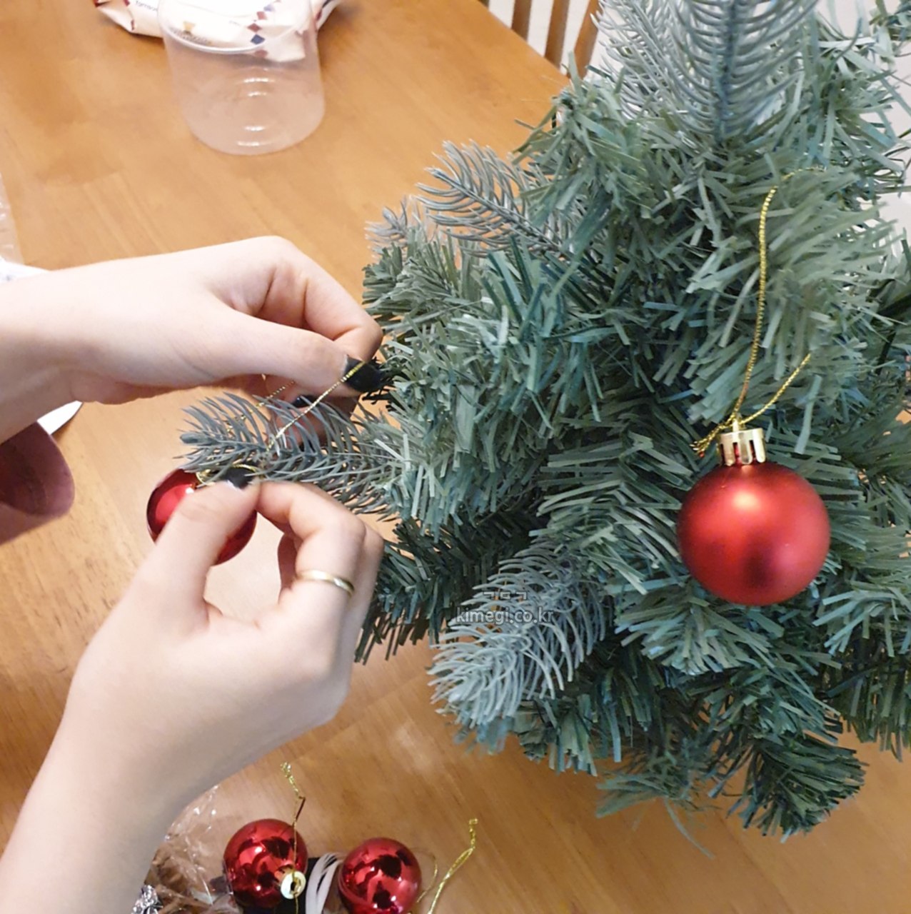 집도 크지 않고 테이블 위에 올려놓을 용도라 작은 트리를 구매했어요. 가격대는 비싸면 정말 비싸고 고급진 트리들도 있고 가성비 제품들도 정말 많더라고요. 저는 일단 처음이기도 하고 크리스마스가 끝나면 짐이 되기 때문에 한철만 사용할 가성비 있는 크리스마스트리를 구매했습니다. 와이프도 처음 크리스마스트리를 꾸며보는 거라 사진 찍을 시간도 안 주고 급하게 만들려고 하더라고요.