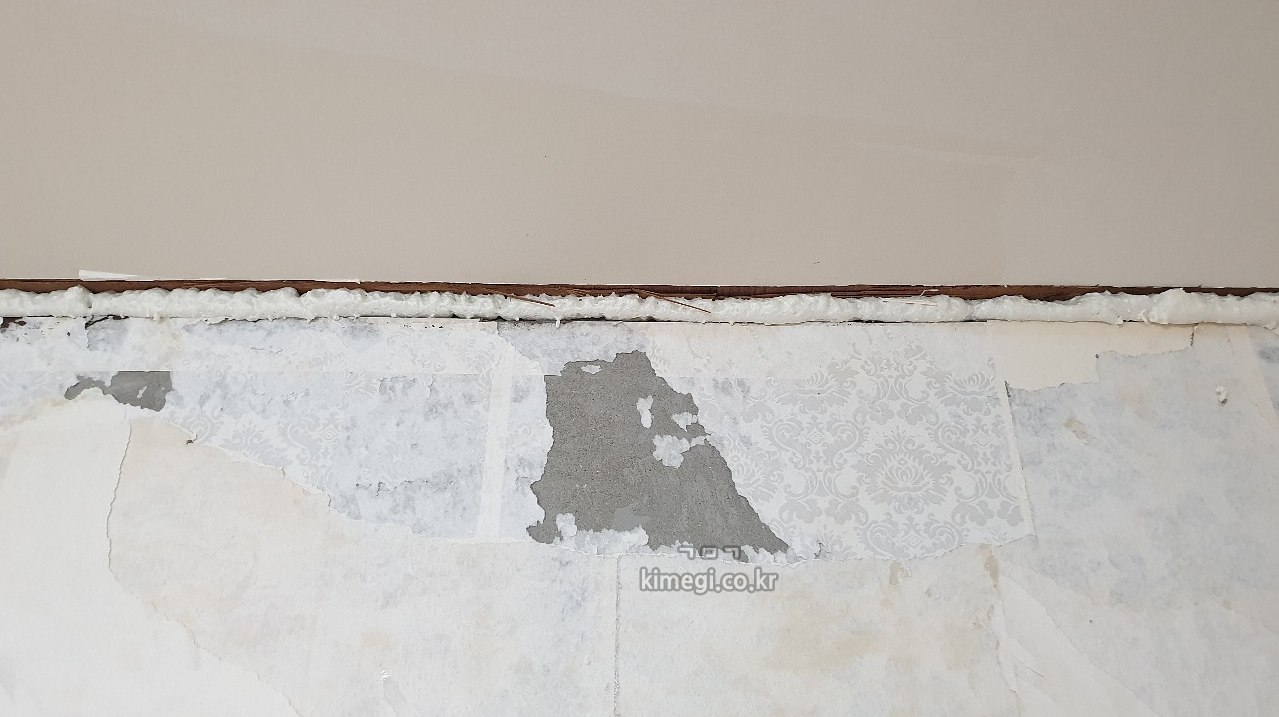 일단 시공 전에 철거했던 몰딩 틈에 폼을 쏴주었어요. 옛날 스타일의 몰딩이었어서 너무 깊고 넓어 최근에는 얇게 몰딩을 하기 때문에 속을 채워야 했어요.