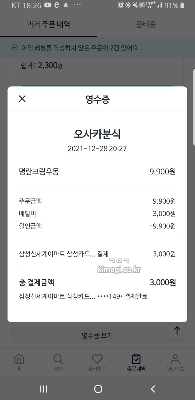 배달음식이 저렴하다고? 이해가 안 되실 수 있지만 아래 제가 주문한 영수증을 보면 이해가 되실 거예요. 모든 영수증에 10000원 할인을 받고 주문을 했습니다. 그래서 배달비만 결제하고 나머지 금액은 할인된 금액으로 이용한 것을 볼 수 있어요.