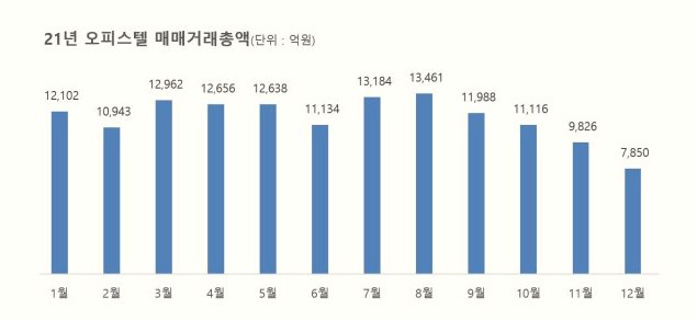 지난 2021년 오피스텔 매매 거래액이 13조 원이 넘었다고 합니다. 정부의 부동산 규제가 심해지면서 아파트 매수가 어렵자 규제가 상대적으로 적은 오피스텔로 매수세가 옮겨갔다고 생각됩니다.