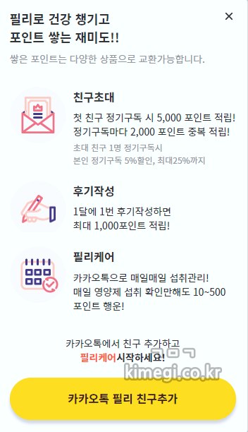 아마 메이커의 거품도 빠지고 한번에 구매하게 되어서 훨씬 저렴하게 영양제를 구매할 수 있는 것 같아요. 심지어 추천인 입력 할인, 구독 할인, 설문 할인을 받으면 최대 45% 까지 할인을 받을 수 있어요. 저도 구매 한 다음에 초대 코드가 있다는 것을 알았어요. 아래 제 초대 코드 남겨놓을게요. 필리 이용하실 분들은 초대 코드 입력해서 5% 할인받으세요.