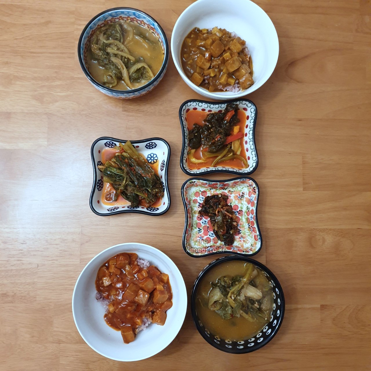 양쪽 어머님들이 주신 반찬만 덜어서 먹으면 10분 만에 거한 한상이 됩니다. 양가 부모님이 다 서울에 살고 계셔서 집에 김치, 밑반찬이 부족하지 않아서 너무 편하네요. 가끔은 너무 많이 주셔서 냉장고가 빈틈없지만 사명감으로 냉장고를 비우기 때문에 금세 여유가 생기곤 해요.