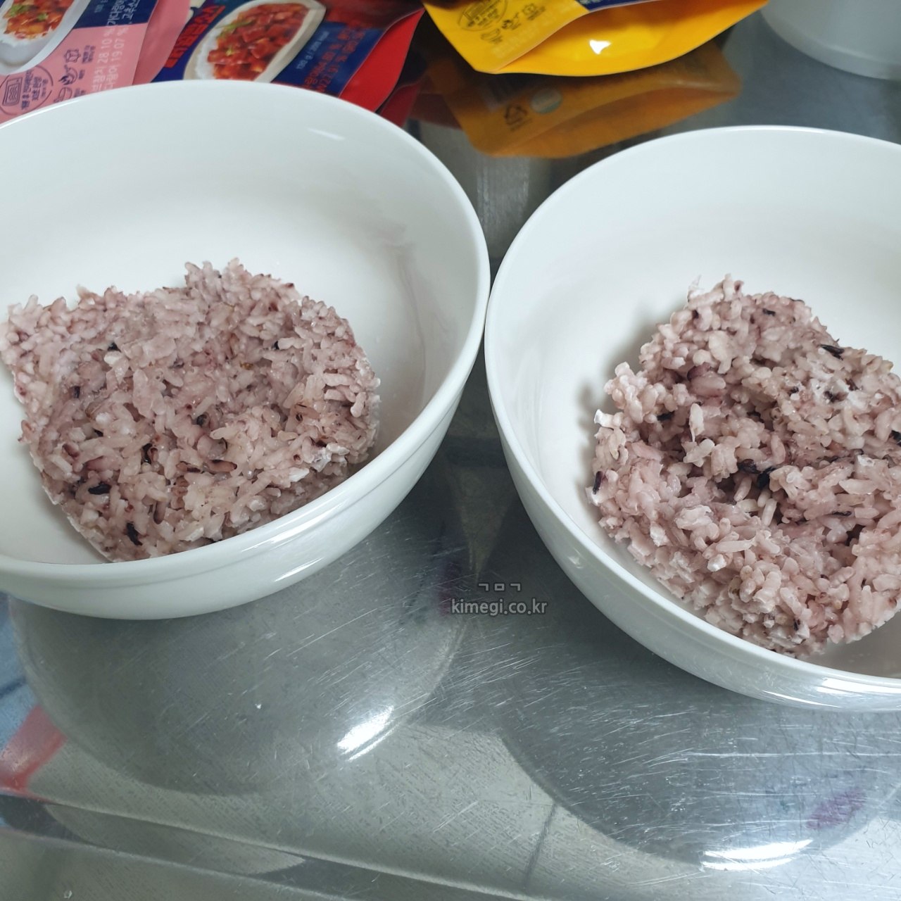 얼은 밥을 3분정도 전자레인지에 돌린 뒤 원하는 맛의 소스를 뿌리고 1분 더 돌려주면 됩니다. 전자레인지가 없으면 뜨거운 물에 봉지를 뜯지 않고 끓여준 뒤에 밥에 부어서 먹으면 됩니다.