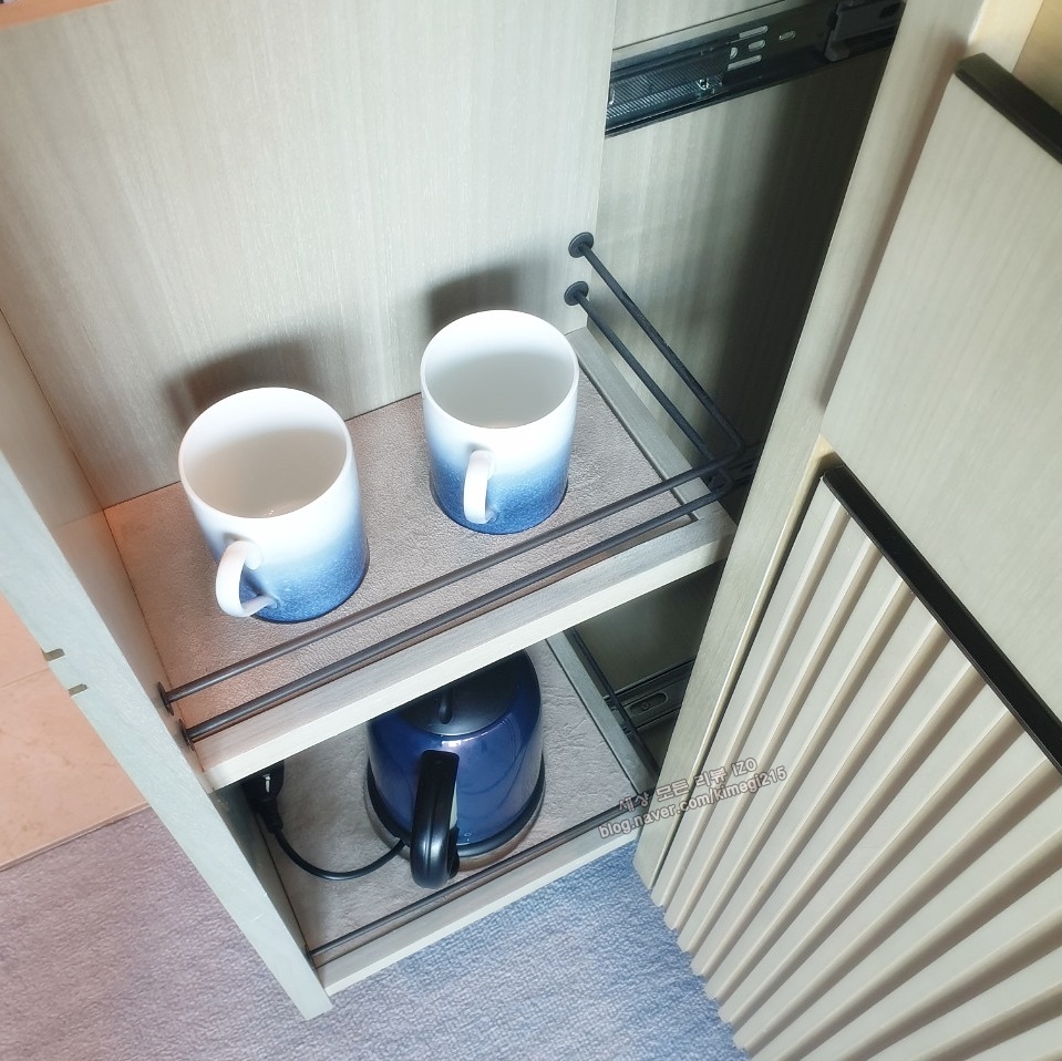 해운대 시그니엘의 디자인은 유명한 디자이너가 했다고 해요. 바다와 하늘 느낌으로 통일해서 베개부터, 휴지 케이스, 커튼, 바닥 , 그림까지 예쁜 바다색으로 되어 있었어요. 부산의 바다 위에 있는 느낌을 받을 수 있었어요.