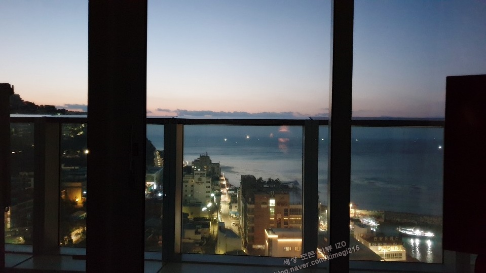 시그니엘 호텔은 바다에 위치하고 있지만 보는 바다가 다릅니다. 해운대를 보는 뷰와 미포항을 보는 뷰가 있어요. 물론 시티뷰도 있습니다. 저희가 머무른 방은 미포 하을 바라보는 뷰로 아침에 일출을 볼 수 있다고 해요. 해운대를 바라보는 곳은 일몰을 볼 수 있는 위치입니다.