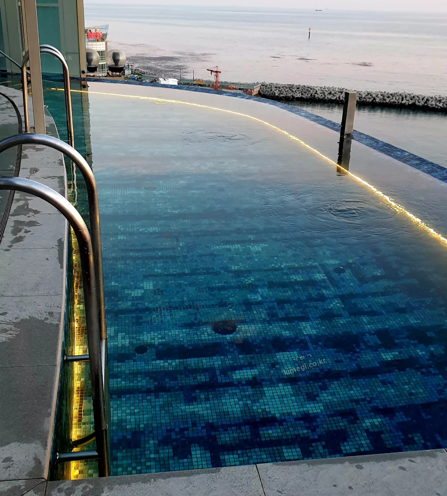 해운대 바다와 해변이 보이는 야외수영장입니다. 하루에 3번 수질관리를 해서 그런지 정말 깨끗했어요. 바다가 보이는 수영장은 처음인데 바다에서 수영을 하는 듯한 느낌입니다. 아직 2월이라 추웠지만 물이 따뜻해서 좋았어요.