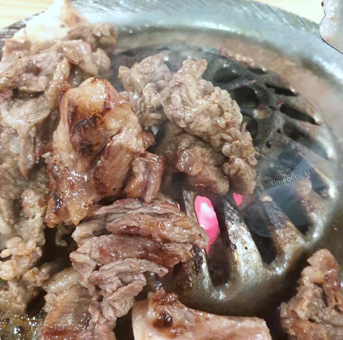 돼지갈비였다면 훨씬 더 큼지막하게 잘랐겠지만 소고기는 잘게 자르게 되더라고요. 한 번이라도 더 먹고 싶어서 어쩔 수 없었습니다.
