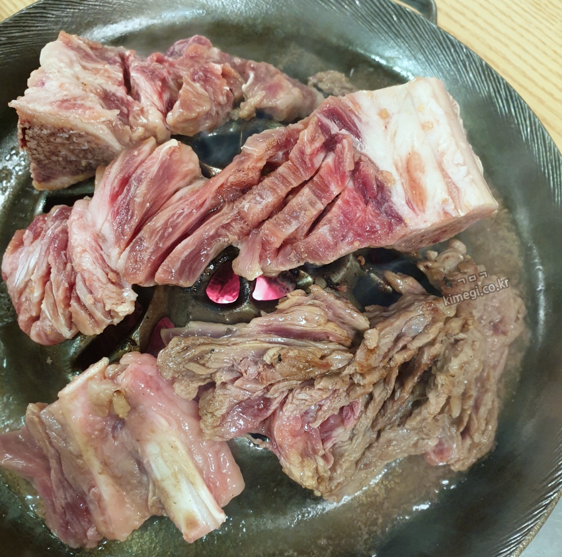 불위에 고기는 올려주시는데 구워주시지는 않아요. 제가 열심히 타지 않게 맛있게 구웠습니다. 비싼 고기 아깝게 태울 수 없죠.