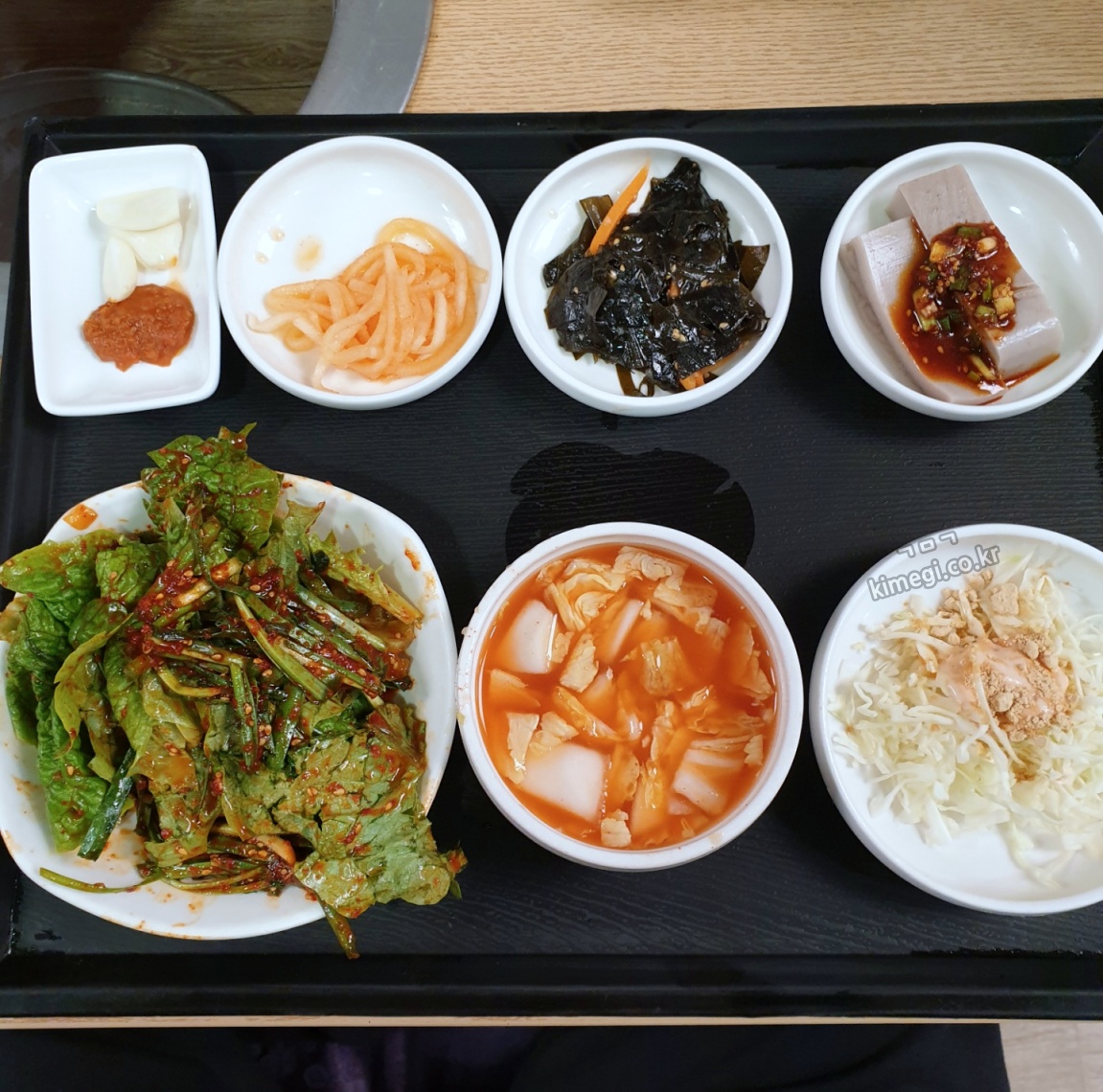 밑반찬은 한 사람에 한 쟁반씩 나와요.