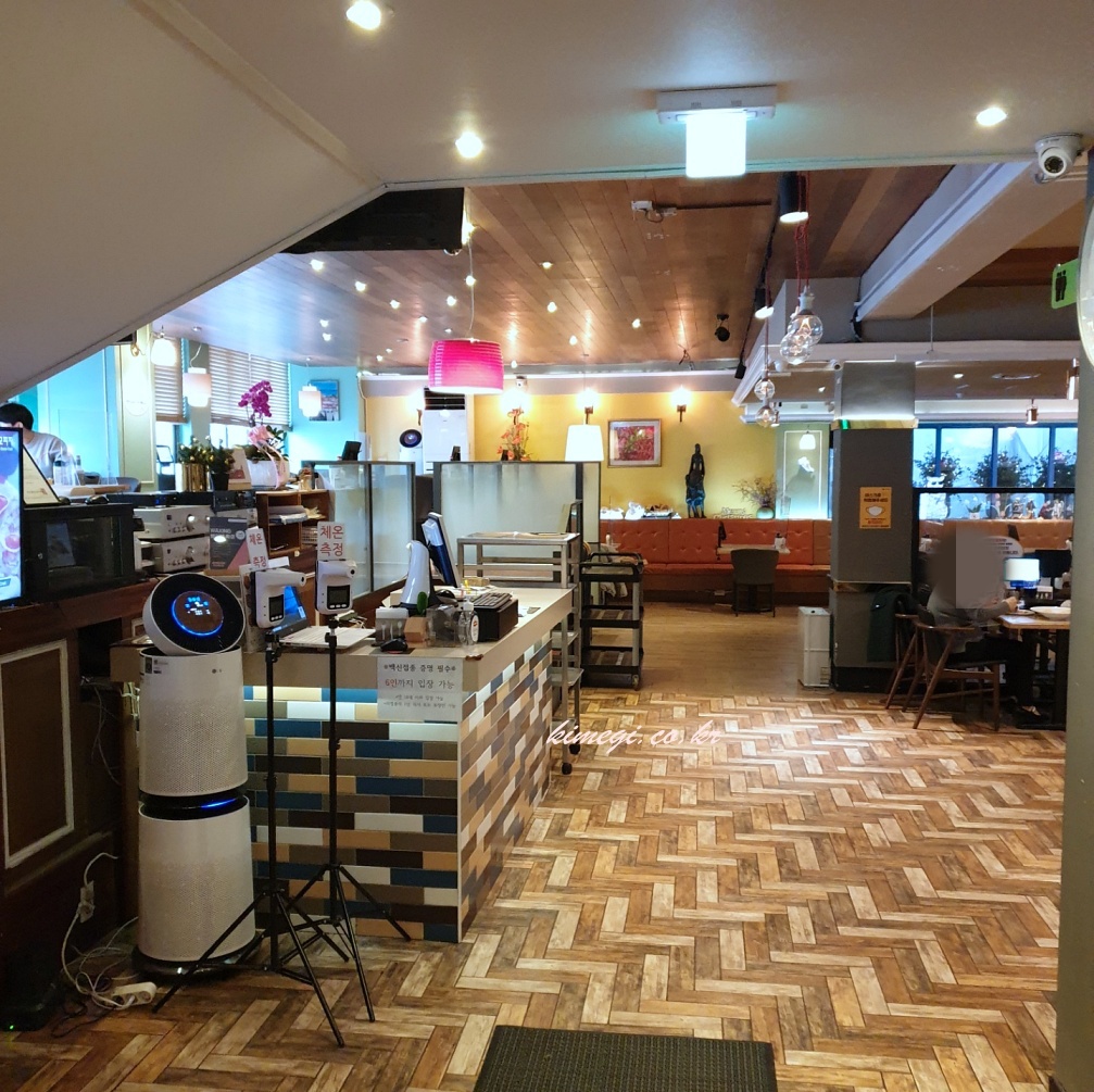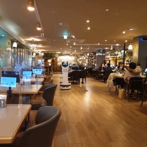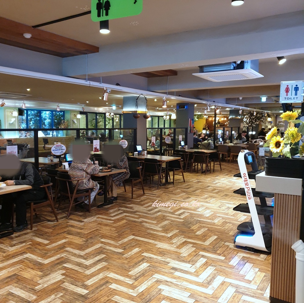 귀여운 로봇이 배송까지 해줍니다. 맛있게 먹으라고도 인사도 해주고 아이들이 좋아하겠어요.