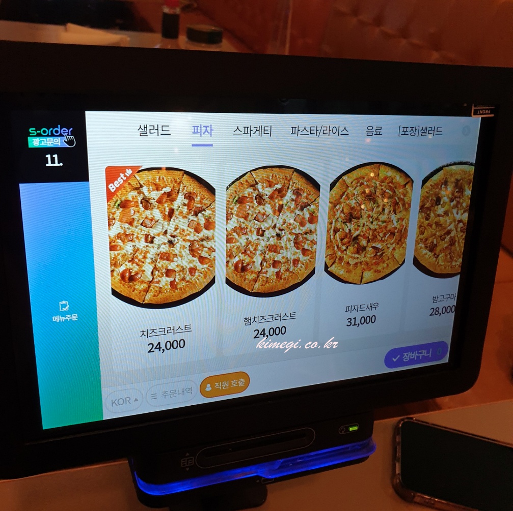 이재모 피자에 정말 많은 피자 메뉴가 있더라고요. 메뉴가 많을 때는 일단 기본부터 주문하는 것이 진리입니다. 이재모 치즈크러스트 피자를 주문했습니다. 아침을 너무 많이 먹어서 일단 S사이즈로 주문했어요. 피자뿐만 아니라 사이드 메뉴도 정말 많아요.