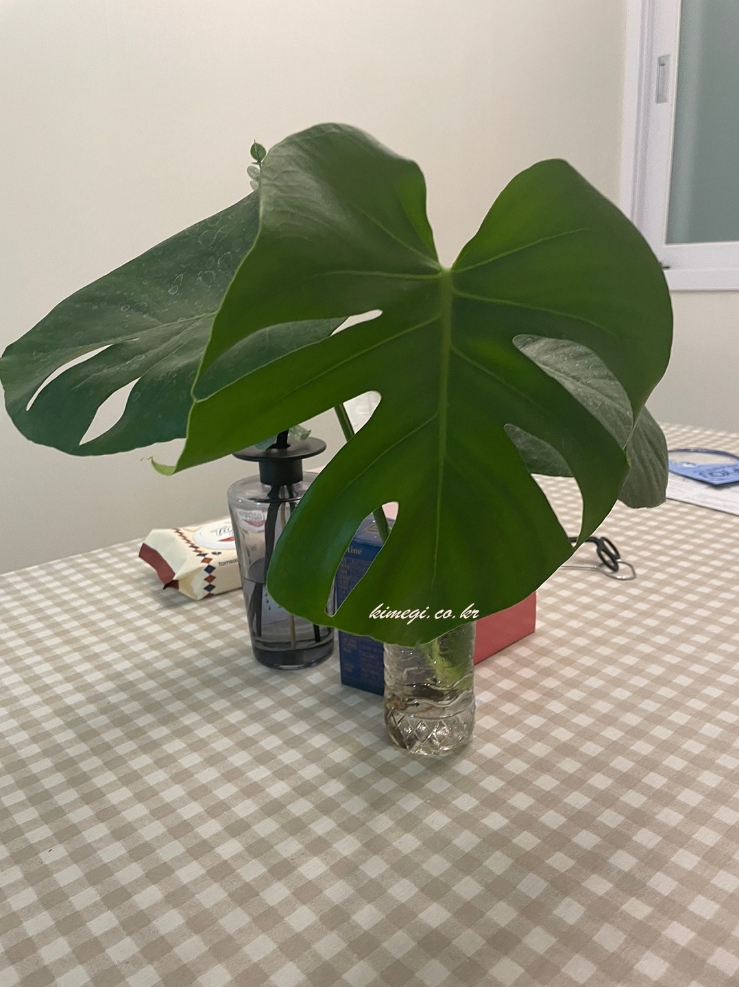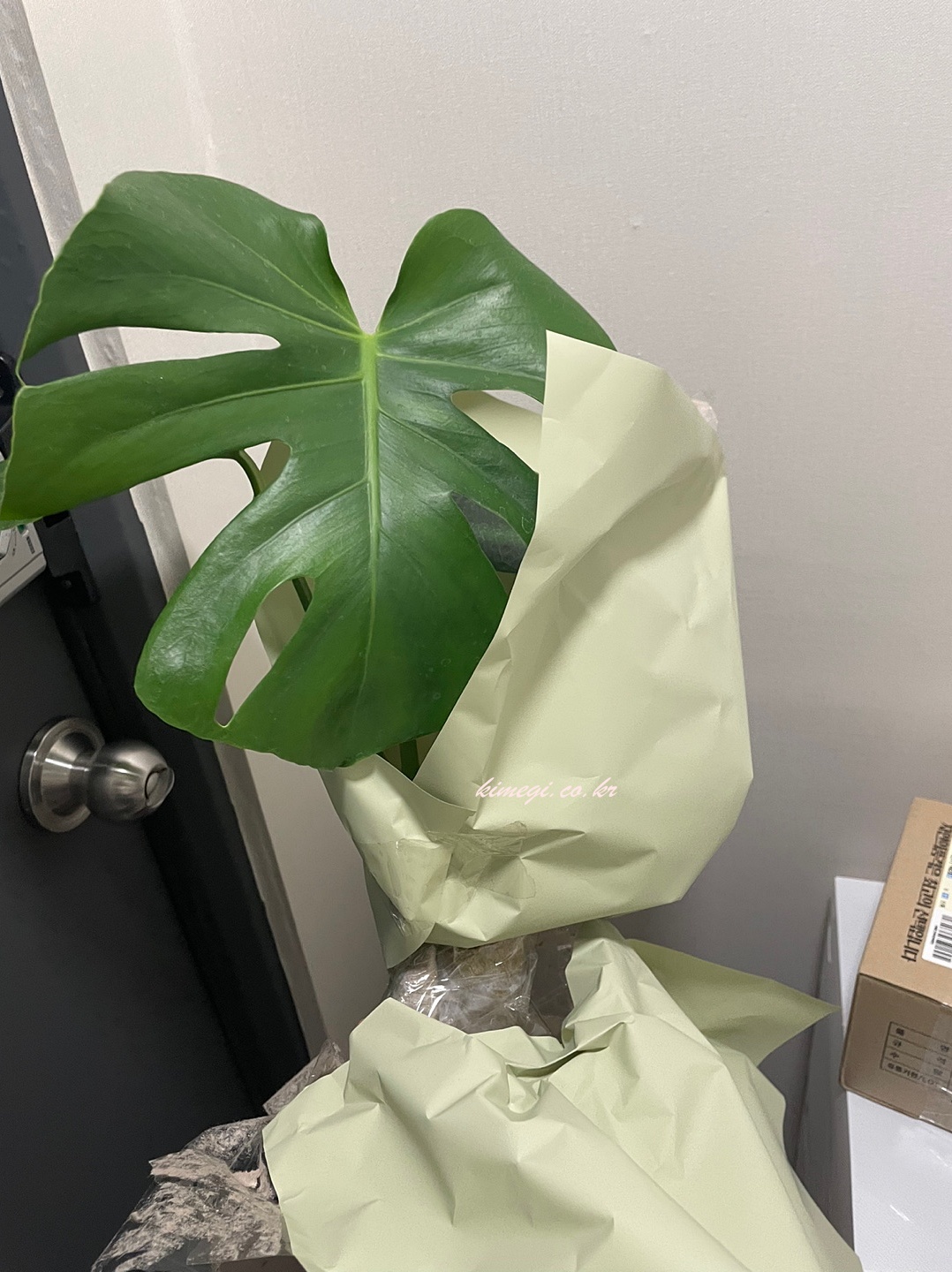 몬스테라는 수경제배도 가능한 종이라서 정말 쉽게 키울 수 있다고 해요. 작은 사이즈를 산 줄 알았는데 배송이 온것을 보니까 은근히 크더라고요. 배송 중 식물이 말라 죽지 않도록 해놓은 포장 때문에 커보인 거였어요.