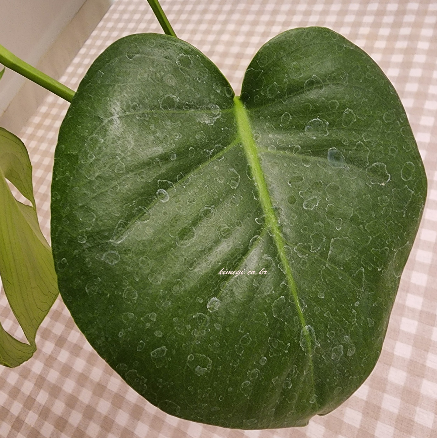 커가면서 묻은 물자국과 먼지가 잎에 지저분하게 묻어있었어요. 물로 닦았는데 잘 안닦여서 물티슈로 닦았더니 깨끗하게 닦이더라고요.