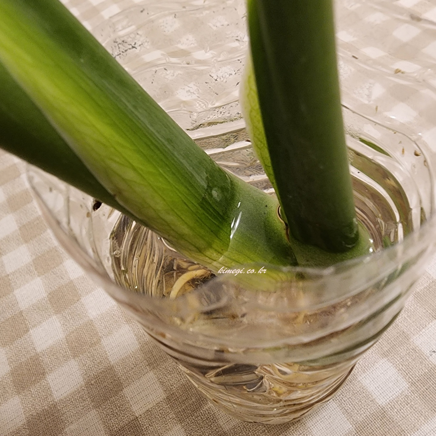 일단 화분이 배송 전이라 패트병을 잘라서 물에 뿌리를 넣어두었어요. 수경제배가 가능해서 물에 넣어놓아도 됩니다. 물론 물보다는 흙에 심는 것이 더 잘 자란다고 해요.