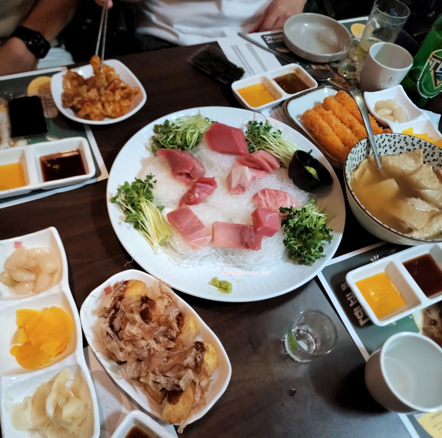 저희는 가장 저렴한 스페셜 코스를 주문했어요. 참치는 스페셜이나 실장 코스나 크게 차이가 없는 것 같아요. 조금 더 마블링이 있거나 특수 부위가 나온다고 하지만 어차피 무제한 참치 스페셜이면 충분합니다. 사실 술 마시면 맛도 잘 못 느껴요. 참치집은 참치도 좋지만 이렇게 밑반찬들이 정말 푸짐하게 나옵니다.