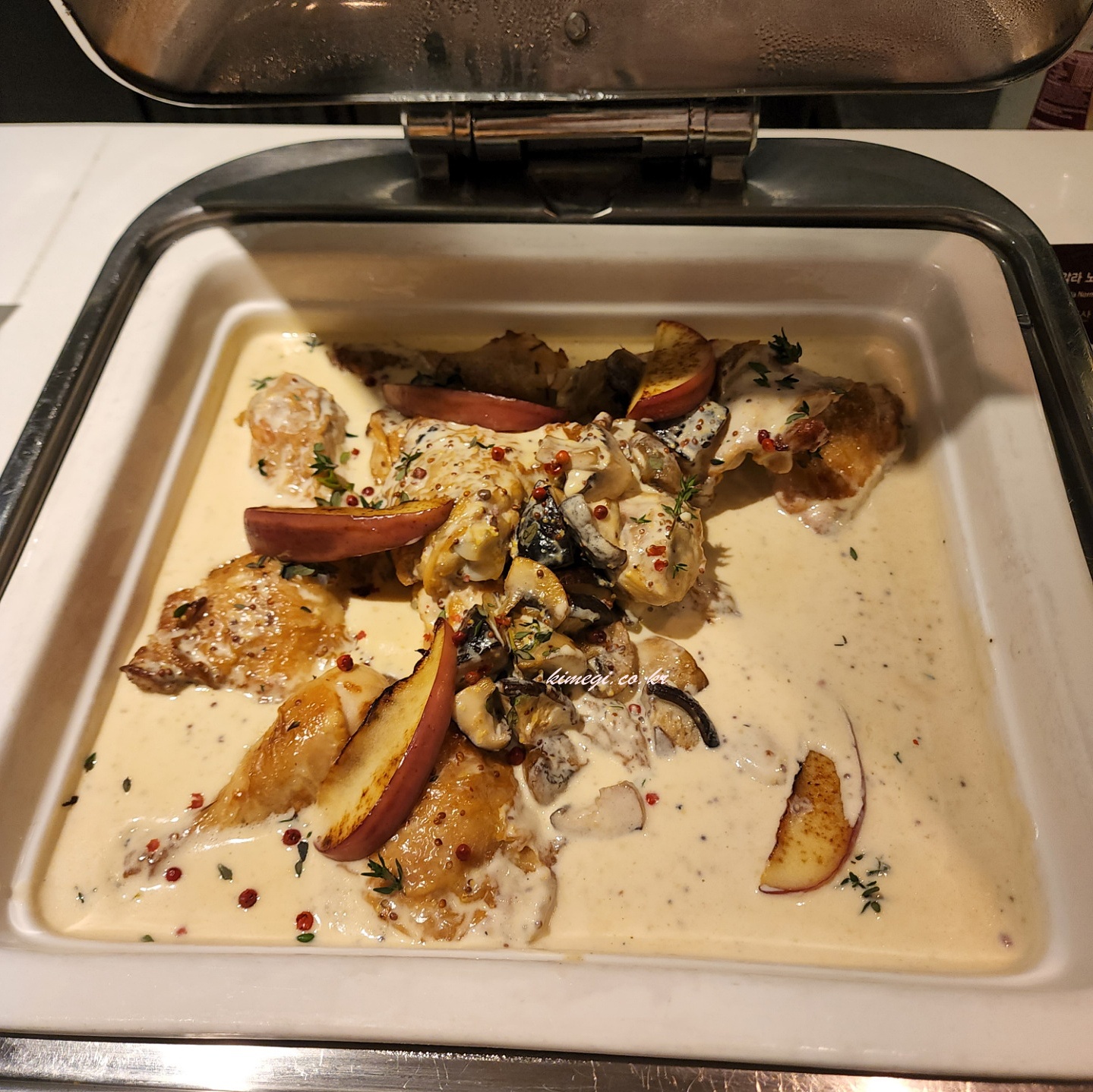 그리고 진짜 맛있었던 요리가 바로 이 양송이 수프 위에 올라와 있던 빵입니다. 베이커리에 있는 디저트보다 이 수프 위에 있던 크로와상 같은 빵이 더 맛있더라고요. 진짜 맛있어서 배가 터질 것 같은데도 먹게 되더라고요.