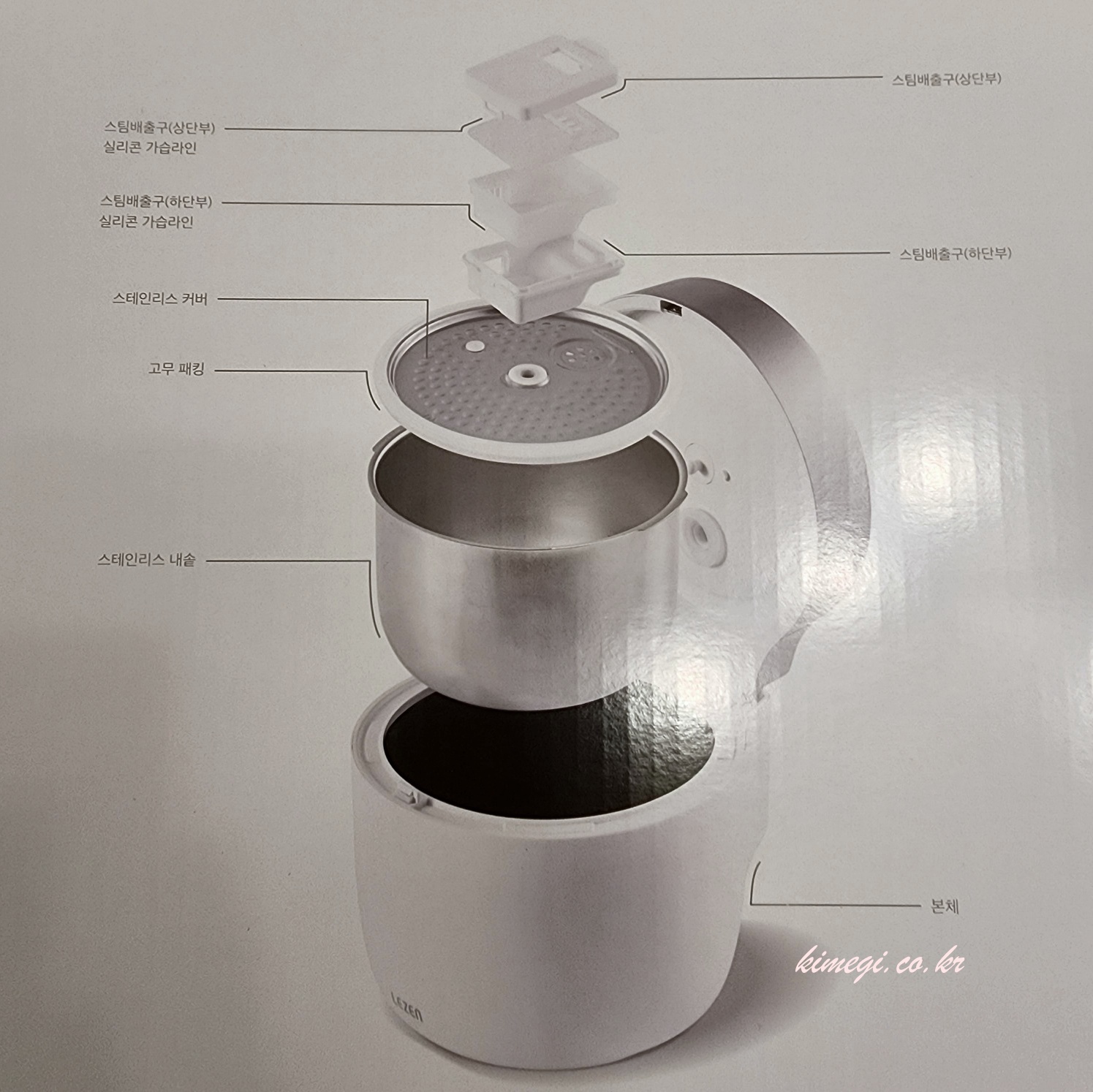 밥통처럼 수증기가 다른 곳으로 새는 것을 막아주는 곳도 고무패킹이 잘 되어 있습니다. 탈착해서 청소도 가능해요.