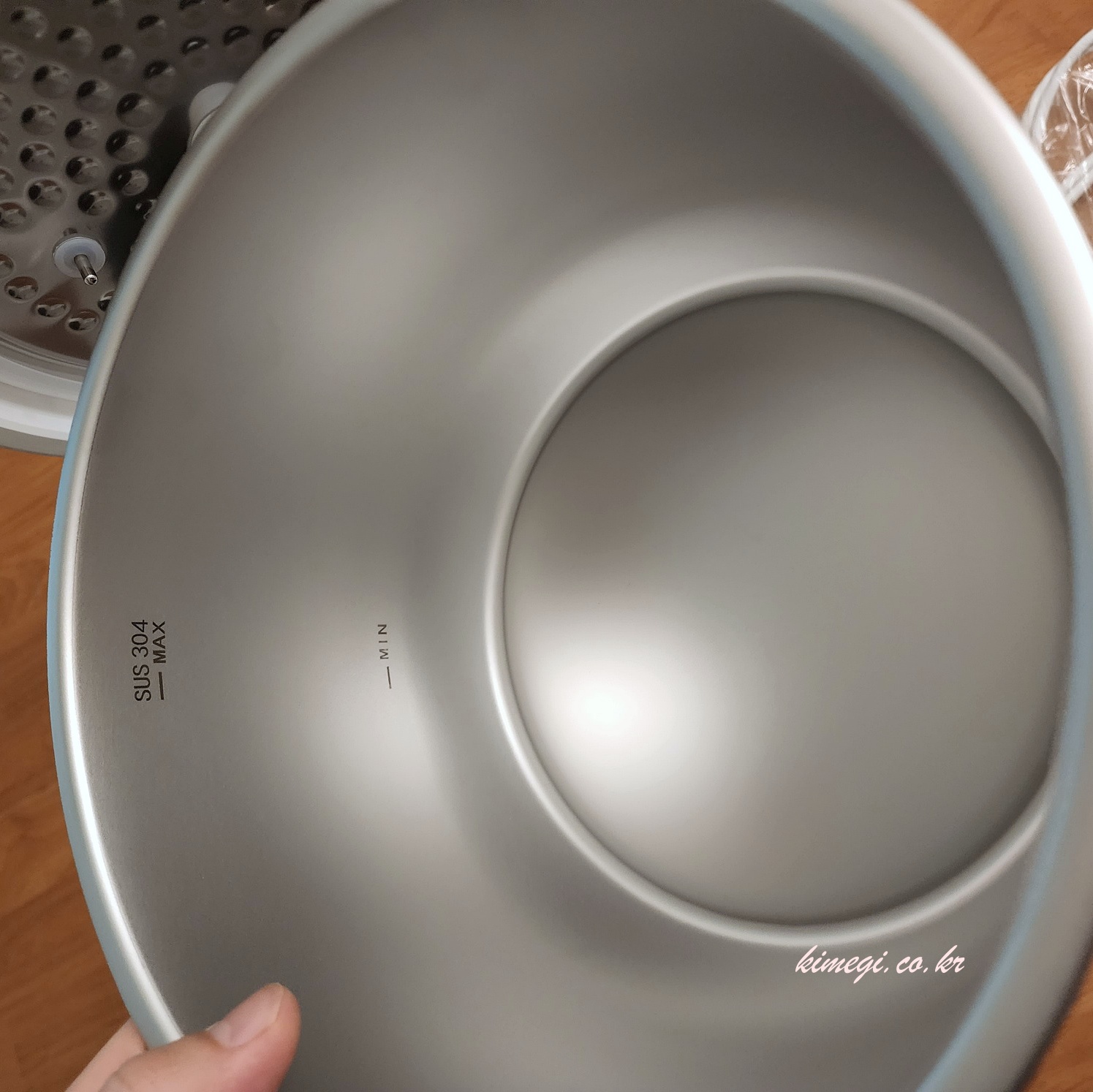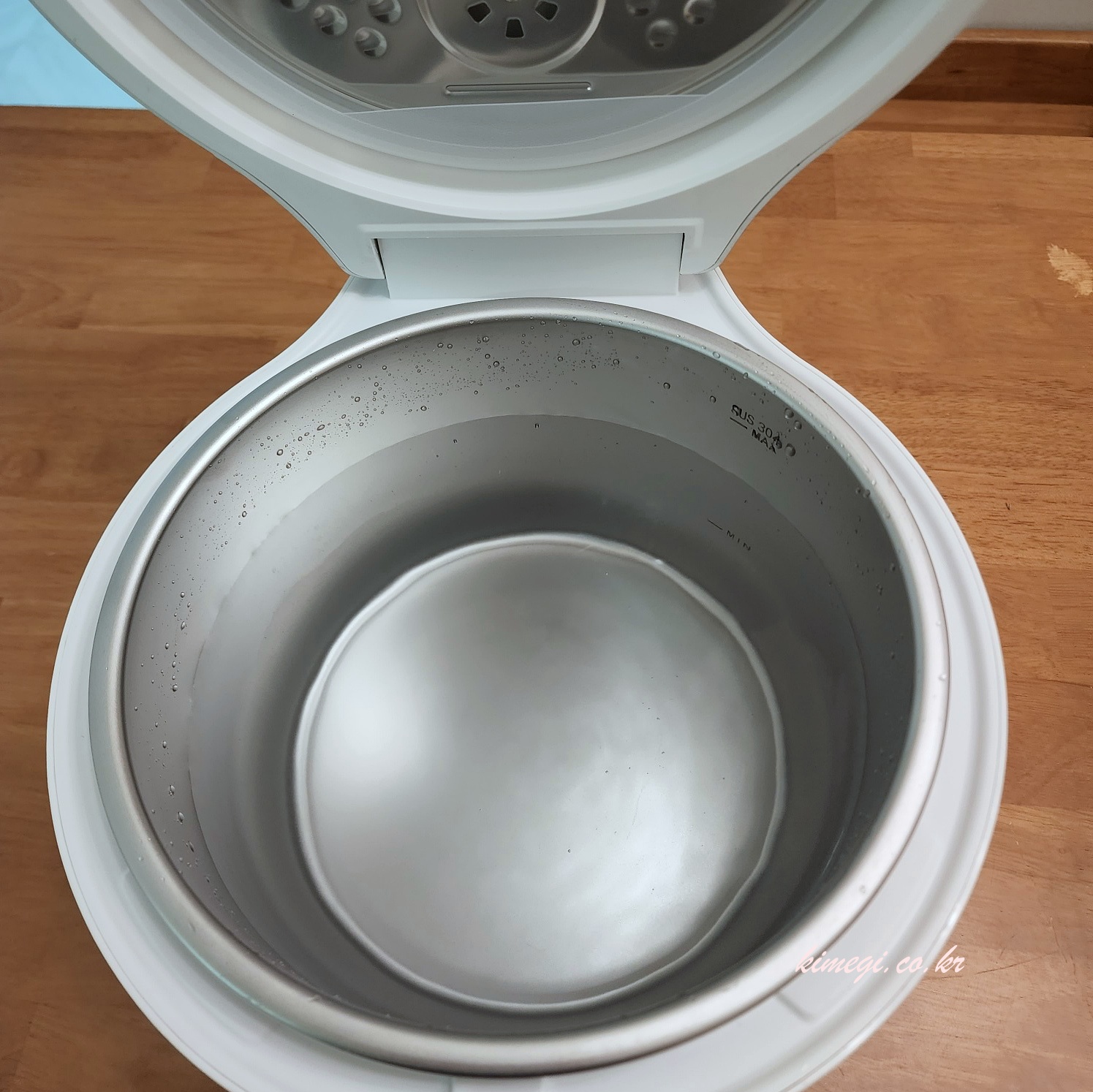 물을 보충하기에도 정말 편합니다. 전기밥솥과도 똑같은 구조예요. 물을 넣을 때 최저점과 최고점이 잘 표시가 되어 있습니다.