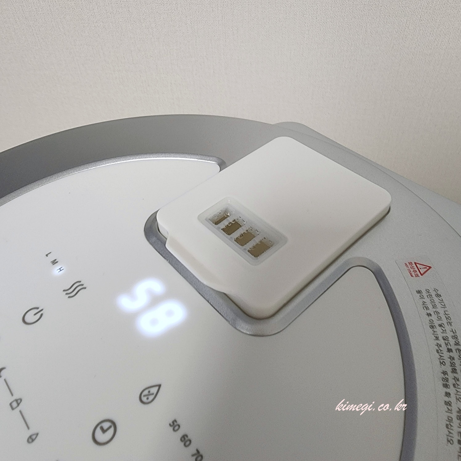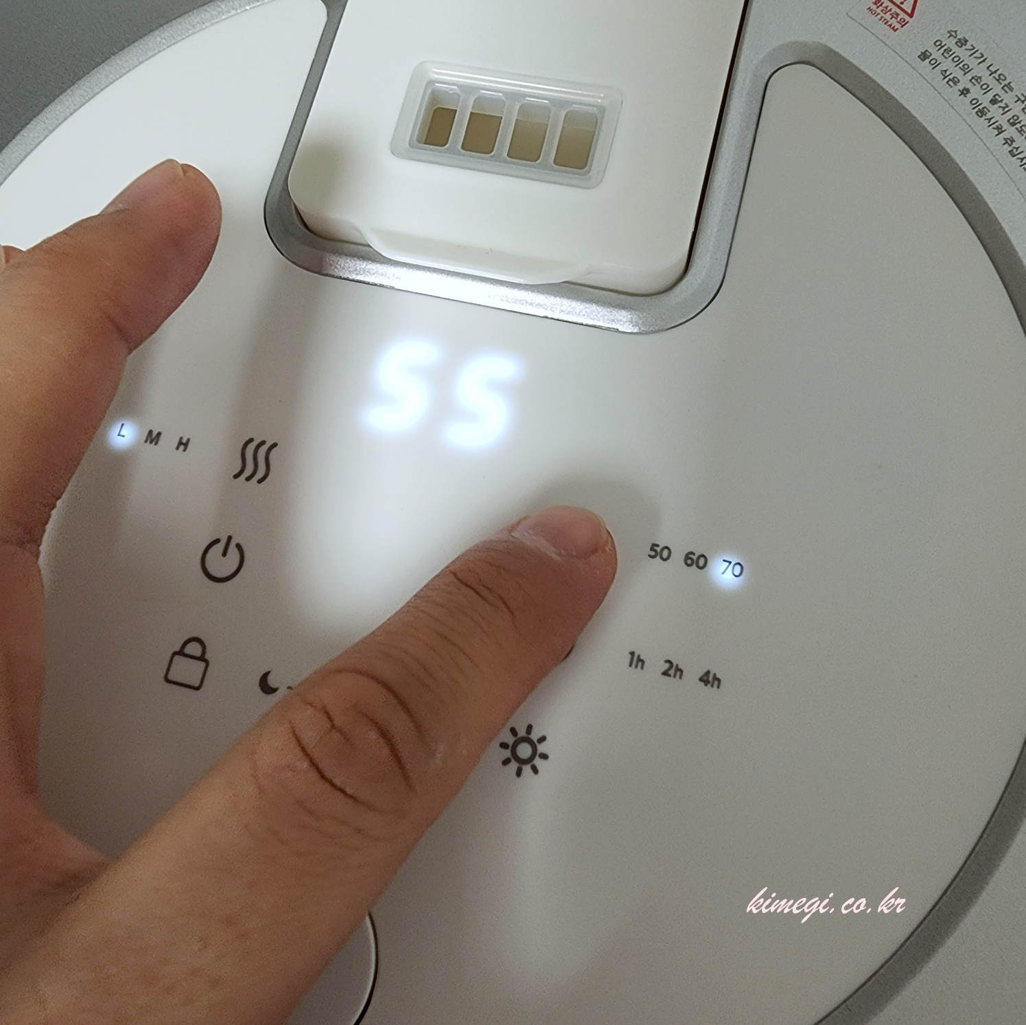 조작 방법도 정말 간단합니다. 뚜껑에 있는 터치패드로 물의 양, 습도, 가동시간을 설정할 수 있어요. 잠금도 2중 자금 장치로 아이들이 쉽게 열 수도 없는 구조예요.
