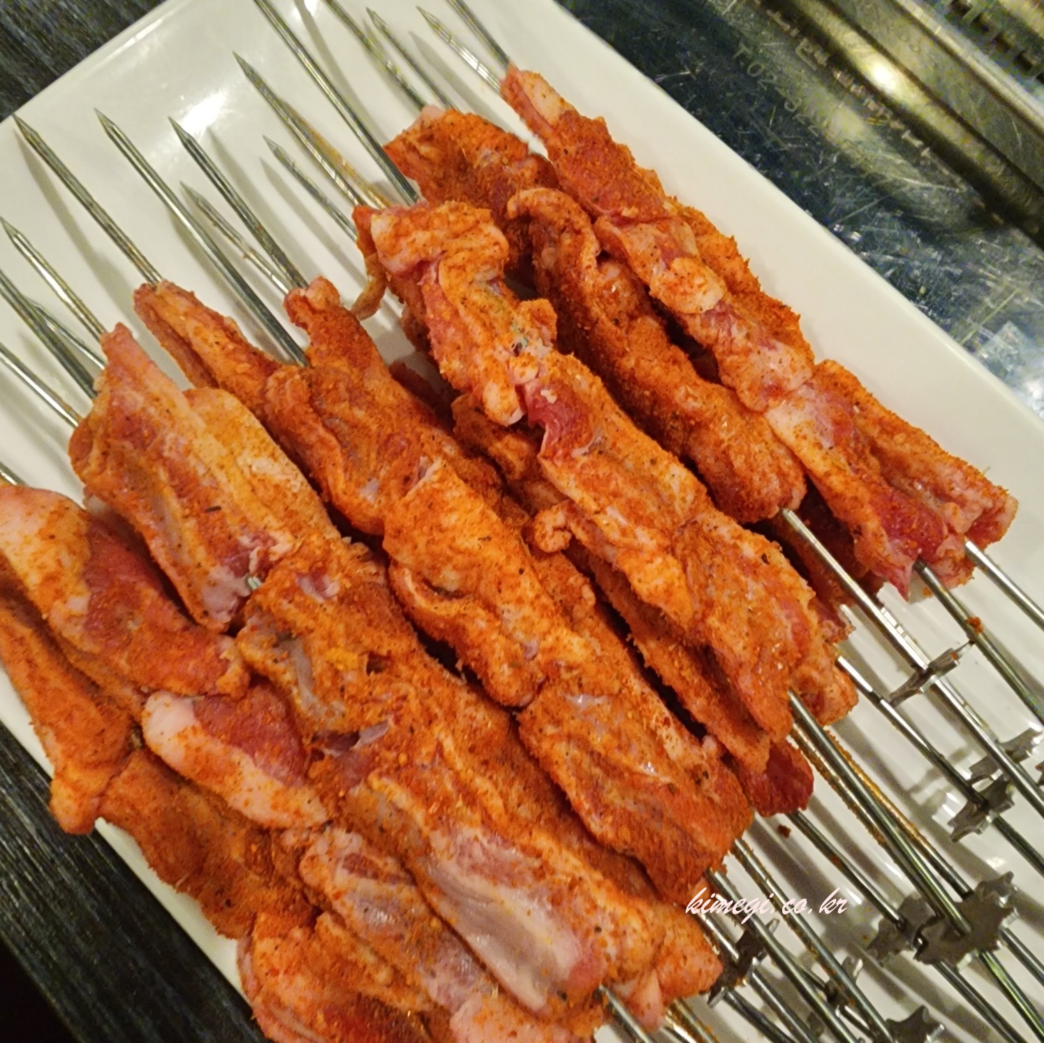 기본 양꼬치를 먹고 양갈비를 주문해 보았어요. 양갈비 꼬치도 양념이 정말 많이 뿌려져 있더라고요. 양갈비는 보통 그대로 나오는데 특이했습니다.