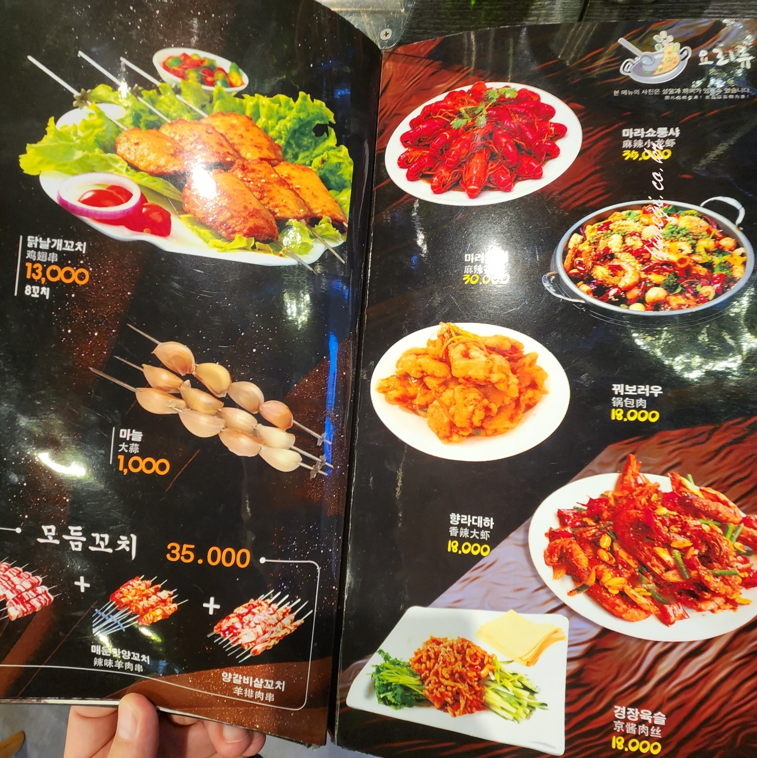 잠실 미성양꼬치 메뉴판